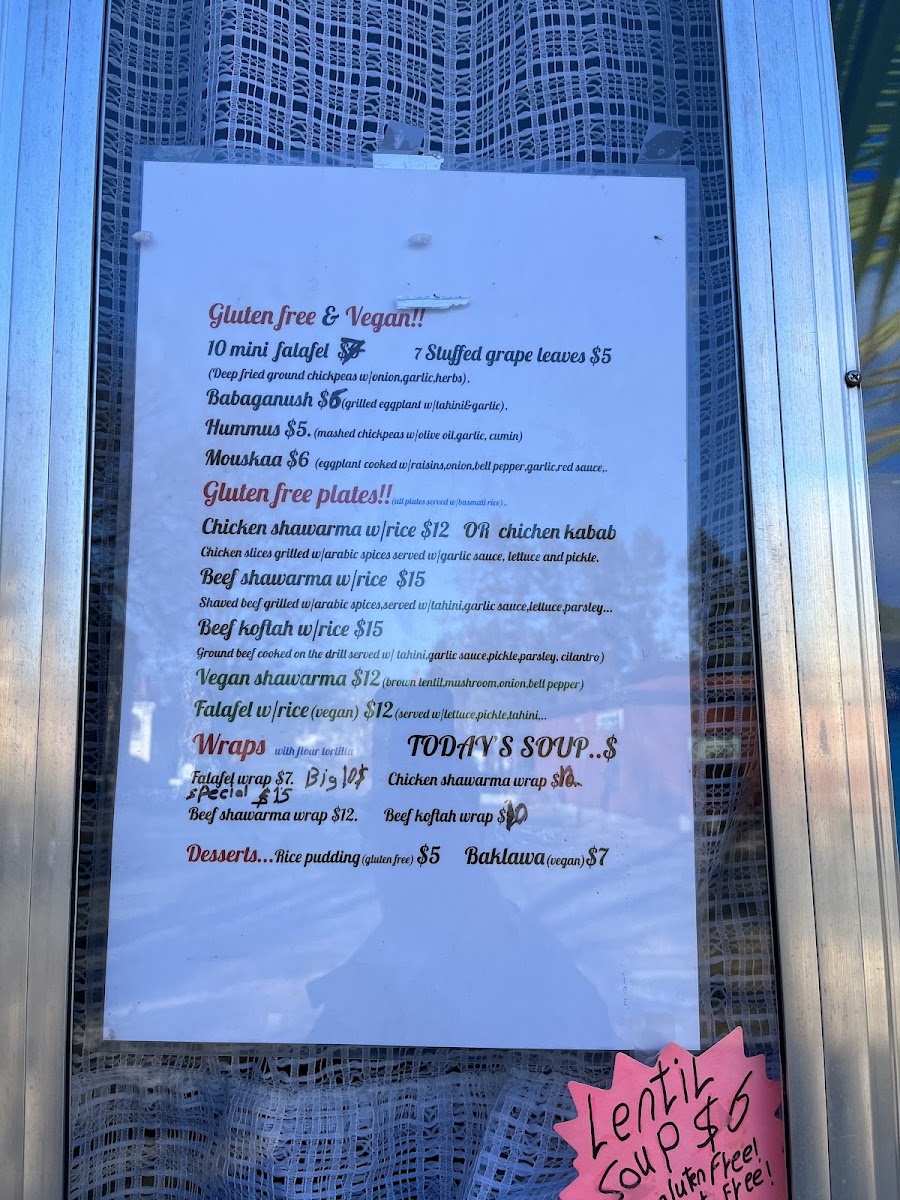 The menu features gluten-free and vegan options like Hummus and Tabbouleh, showcasing vibrant tastes in every bite. For a heartier experience, indulge in their famous Chicken and Beef Shawarma or a flavorful Falafel plate served over rice, all expertly crafted by Asma.